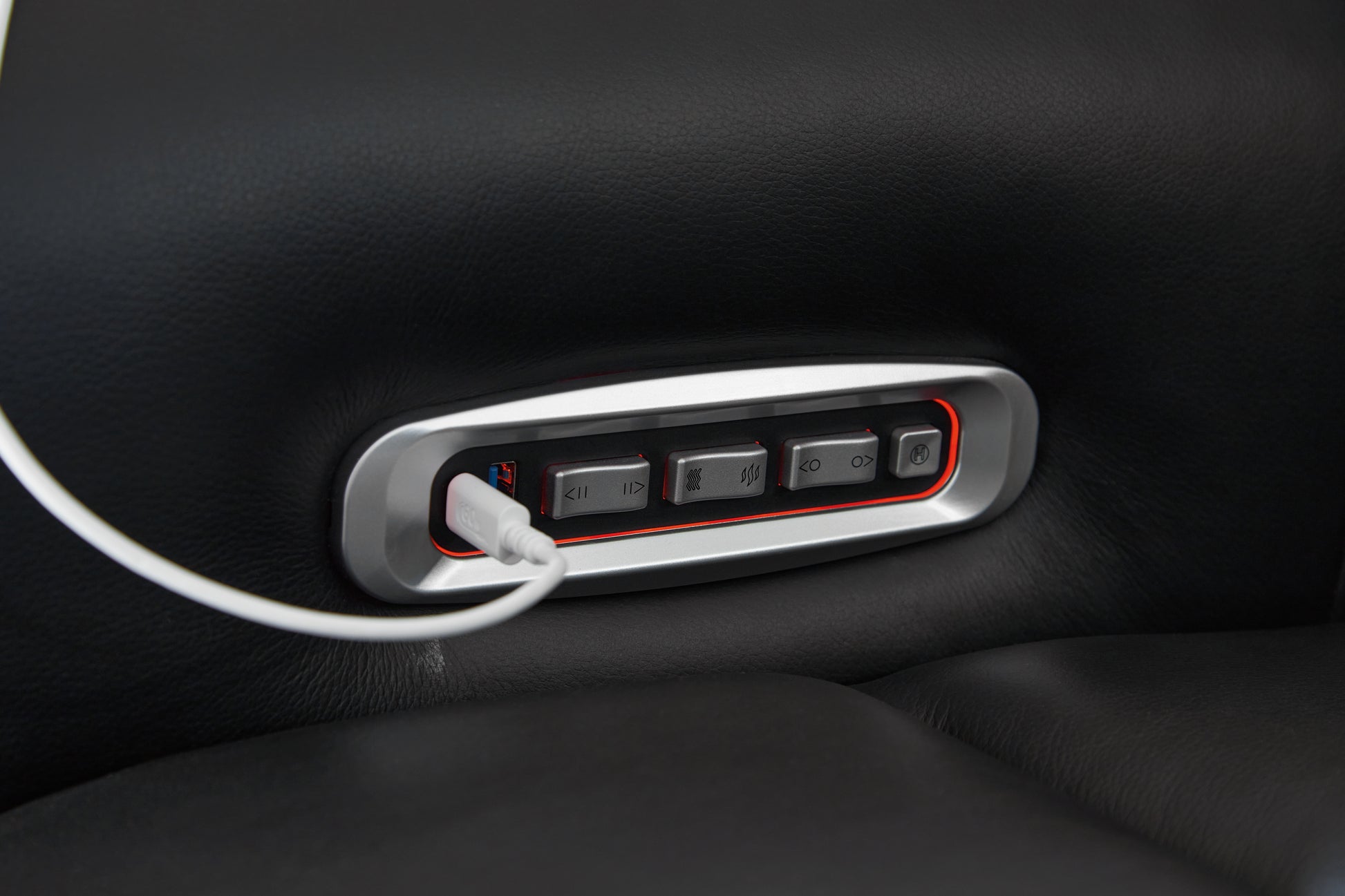 Masterfully blend high style and must-have comfort with this power recliner. Its clean, transitional look is crafted with luxury in mind, complete with supple top-grain leather in the seating area. Eloquently incorporated into the sleek design are features that take relaxation to the next level, like one-touch reclining, adjustable headrests and USB charging. Even more indulgent? Heat and massage functions that bring soothing relief from head to toe.