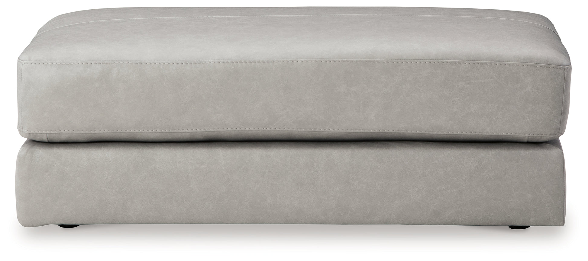 Keen on crisp, contemporary design? Adore the pleasure of leather? Look no further. This ottoman satisfies on every level. Richly textured and decadently supple, the cushion is wrapped with expertly matched leather and faux leather upholstery in an on-trend neutral tone. The ottoman's generous scale and clean-lined profile complete its simply chic appeal.