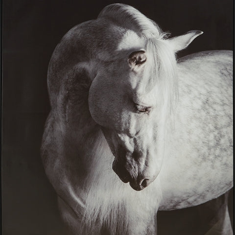 This wall art is a handsomely detailed addition to your wall decor. The black and white color grading adds an air of elegance to the portrait. Chic in casual and contemporary spaces alike, it’s a graceful interpretation of equine beauty.