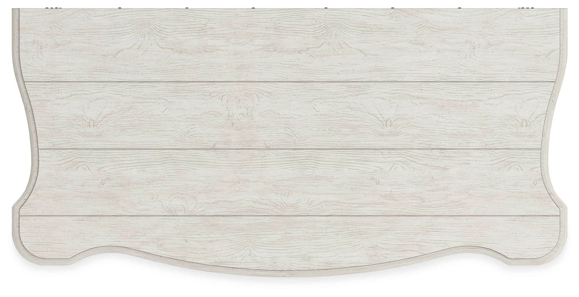 Add a touch of romance to your bedroom with this dresser and mirror. Its antiqued white painted finish and serpentine-shaped silhouette are the definition of easy elegance. Custom-designed aged pewter-tone hardware adds surprisingly casual appeal.