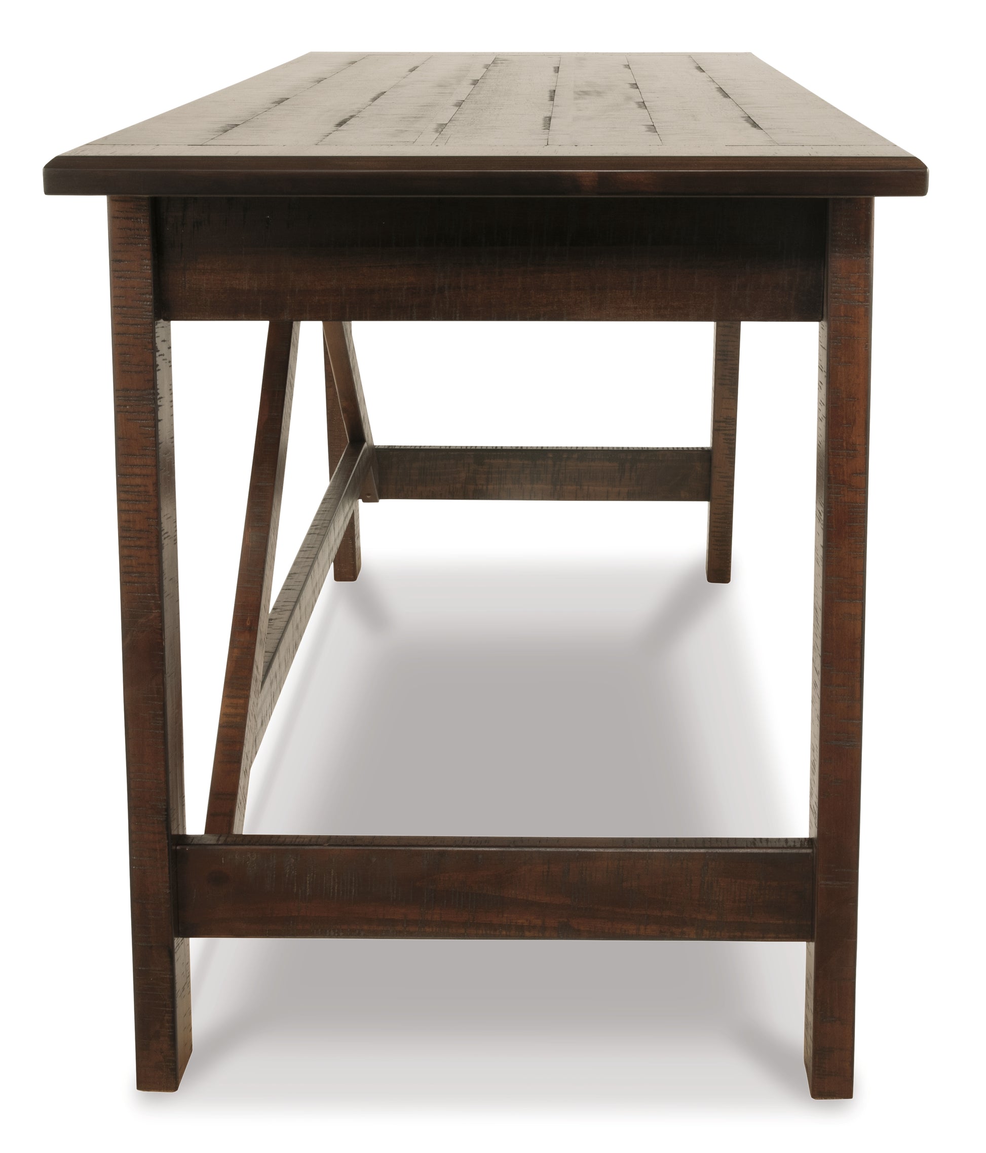 Leaning toward a casually cool look with a touch of rustic industrial flair? This home office desk with canted legs takes a fresh stance on style. Two smooth-gliding drawers with dovetail construction reflect high quality that never goes out of fashion. Saw marks infuse a touch of rich distressing. Antiqued sculptural pulls provide the finishing touch.