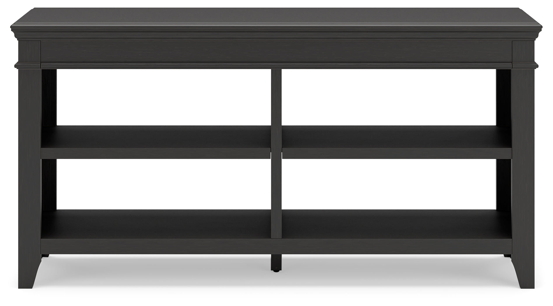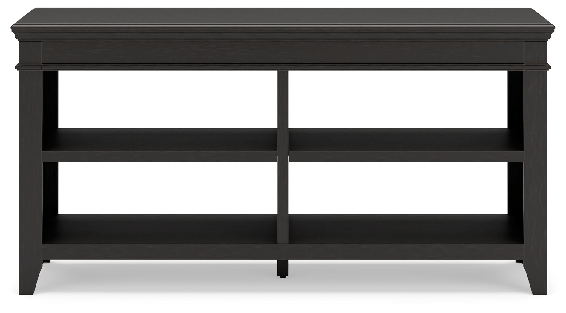 Make a style statement with this home office credenza. Its traditional design is updated with an on-trend vintage black finish. The credenza's open storage and adjustable shelving add up to a well-organized workspace.