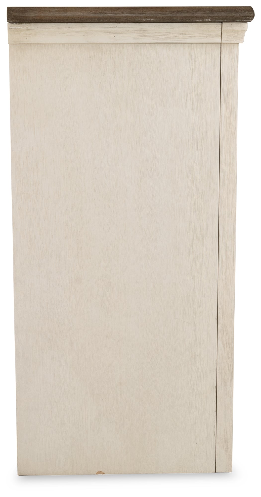 Whether your style is farmhouse fresh, shabby chic or country cottage, you’ll find this extra large TV stand perfectly in tune. Its two-tone, gently distressed finish pairs weathered oak with antiqued white for that much more quaint character. Charming elements include crossbuck adorned cabinets with glass inlays for peek-through flair. Ample adjustable shelving and cutouts for wire management nicely accommodate your media needs.