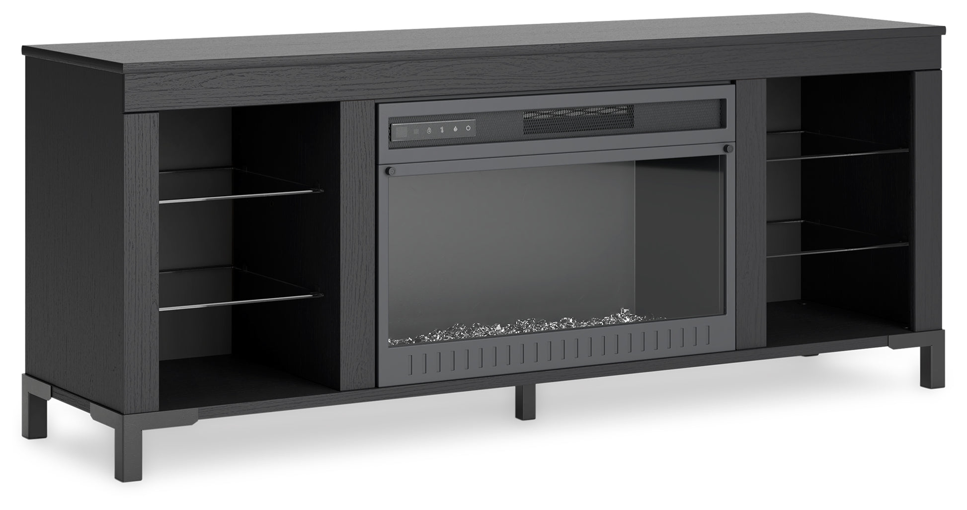 Level up your gaming experience and make movie nights to remember. This TV stand with electric fireplace extends your entertainment beyond the screen. Its built-in fireplace brings the heat, synchronizing with LED backlighting on the shelves. And you can customize the vibe with trendy color options: red, green, blue and magenta. Modern function. Captivating, cool style. With this TV stand, revamp your home’s recreational hub like never before.