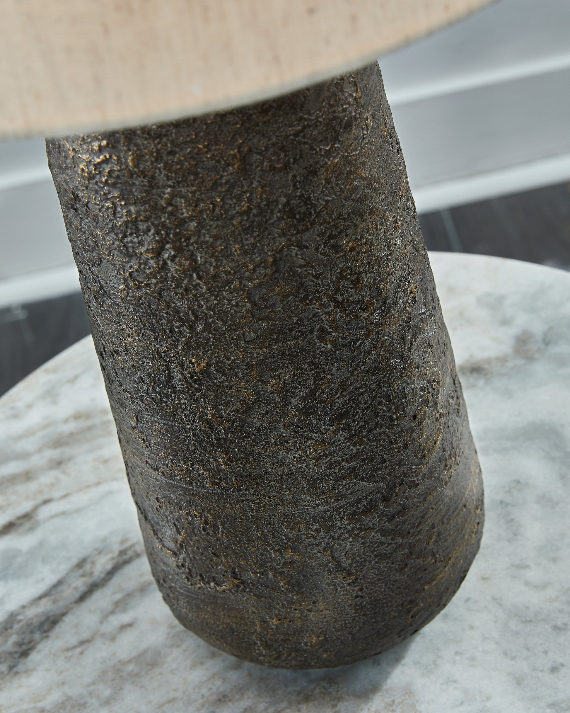 Modern industrial design in a new light. A mixed-media masterpiece, this table lamp provides maximum interest and exceptional versatility with its heavily textured surface. Whether resting on your nightstand or set on a side table, it delivers a unique aesthetic to your casual space.