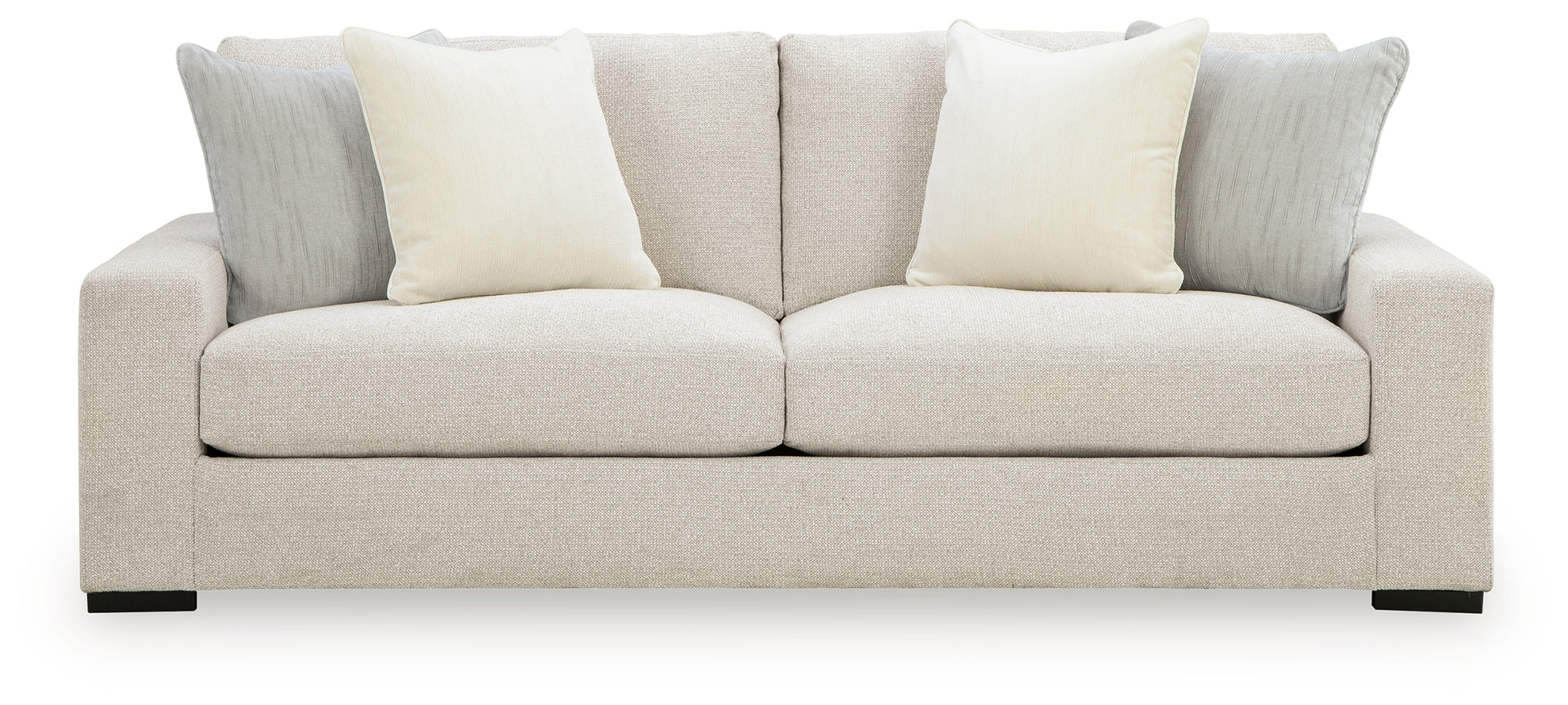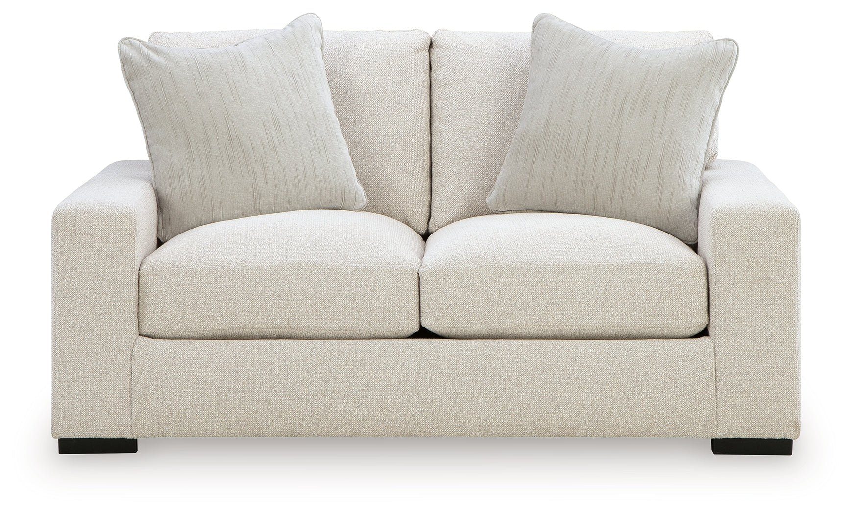 - High-density foam cushions wrapped in feather-fiber blend jacket