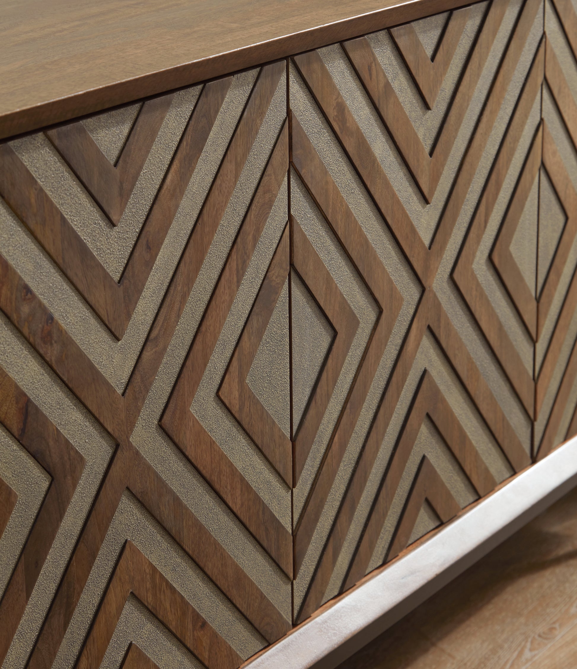 If you’re looking for a cool accent piece loaded with character, then you’ll want to carve out some space for this accent cabinet. Fabulous push magnet doors wow with their carved diamond design, while two interior shelves accommodate your storage needs. What a perfect way to mix an exotic element with your decor.