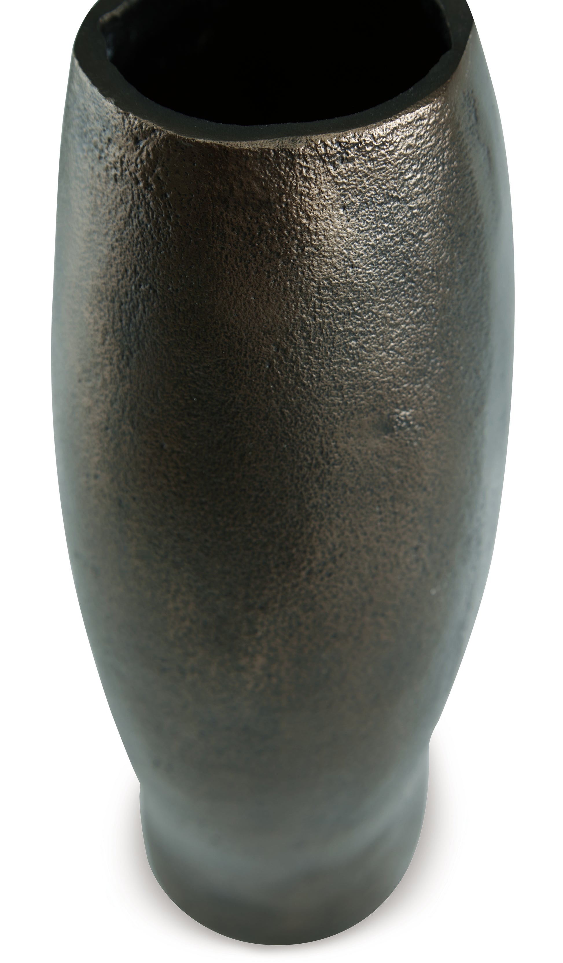 This vase offers an abstract take on the human profile. An antiqued bronze-tone finish adds an air of subtle sophistication. Artistic in form on its own, this contemporary piece is equally as impressive displayed with other decor.