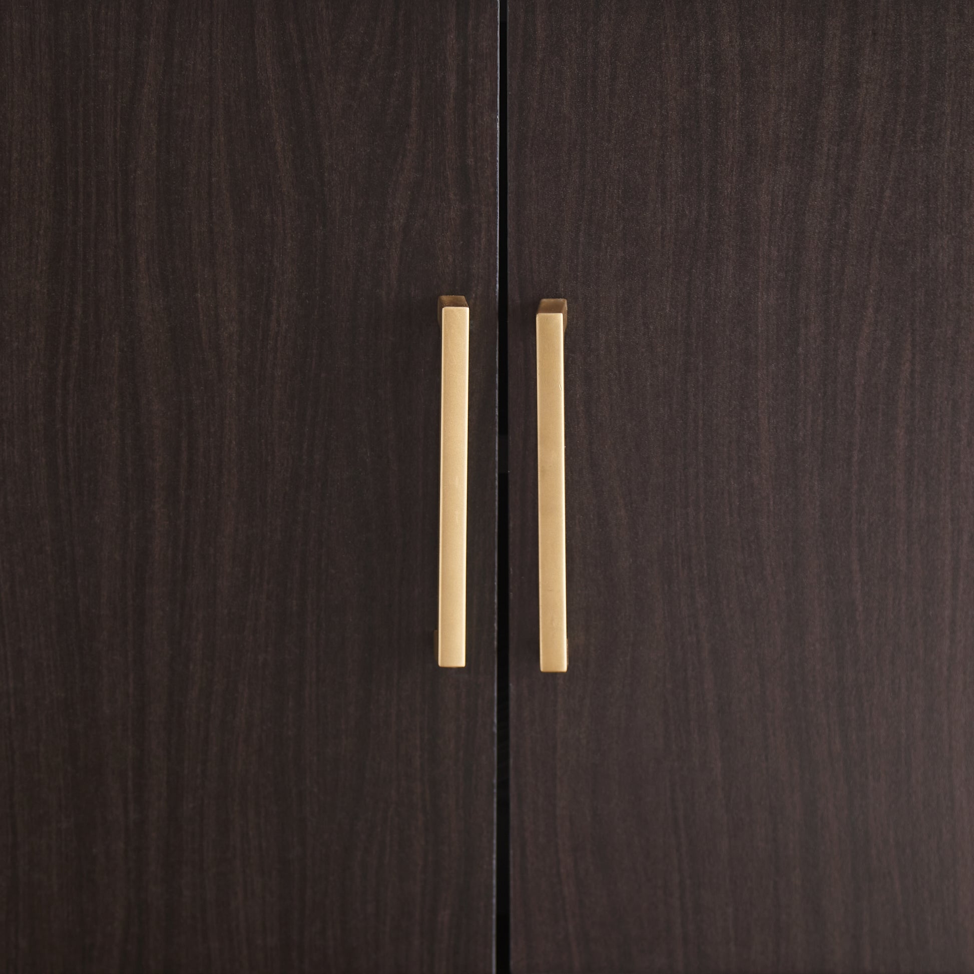 Open the door to clean-lined form and functionality with this accent cabinet. Its rich dark brown finish is enhanced with goldtone door pulls. Adjustable shelf caters to your needs.
