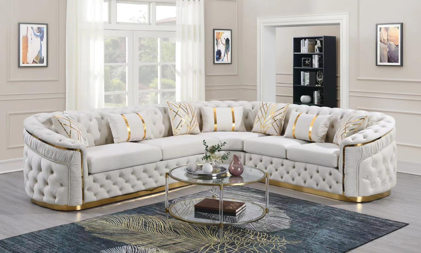 The Queen Sectional exudes elegance and sophistication, making it the perfect centerpiece for any modern living space. Designed with plush, tufted upholstery and adorned with luxurious metallic accents, this sectional offers both style and supreme comfort. Its spacious seating arrangement provides ample room for relaxation, while the high-quality craftsmanship ensures long-lasting durability. Whether you're hosting guests or enjoying a cozy night in, the Queen Sectional delivers the perfect combination of beauty and functionality.