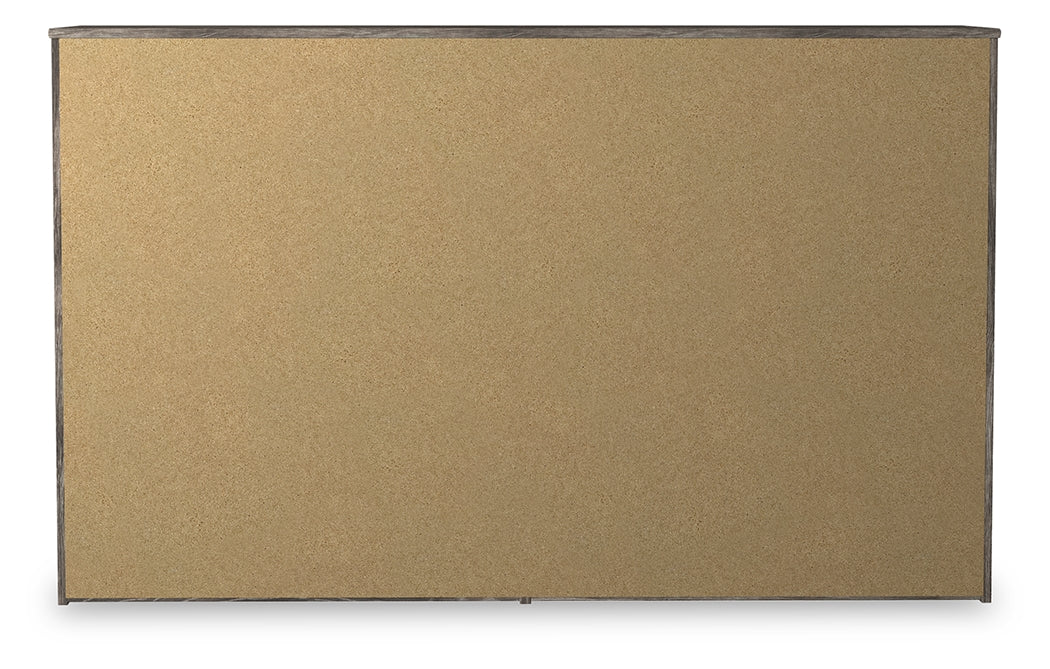 With its clean-lined look and modern attitude, this dresser and mirror is a fresh style awakening. A warm gray hue over replicated oak grain easily complements other furniture finishes. Smooth drawer fronts with antiqued pewter-tone handles complete the aesthetic.