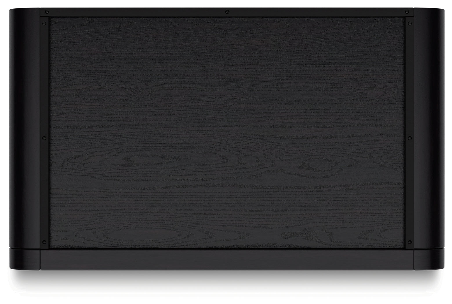 - Black finish on textured wood grain surface