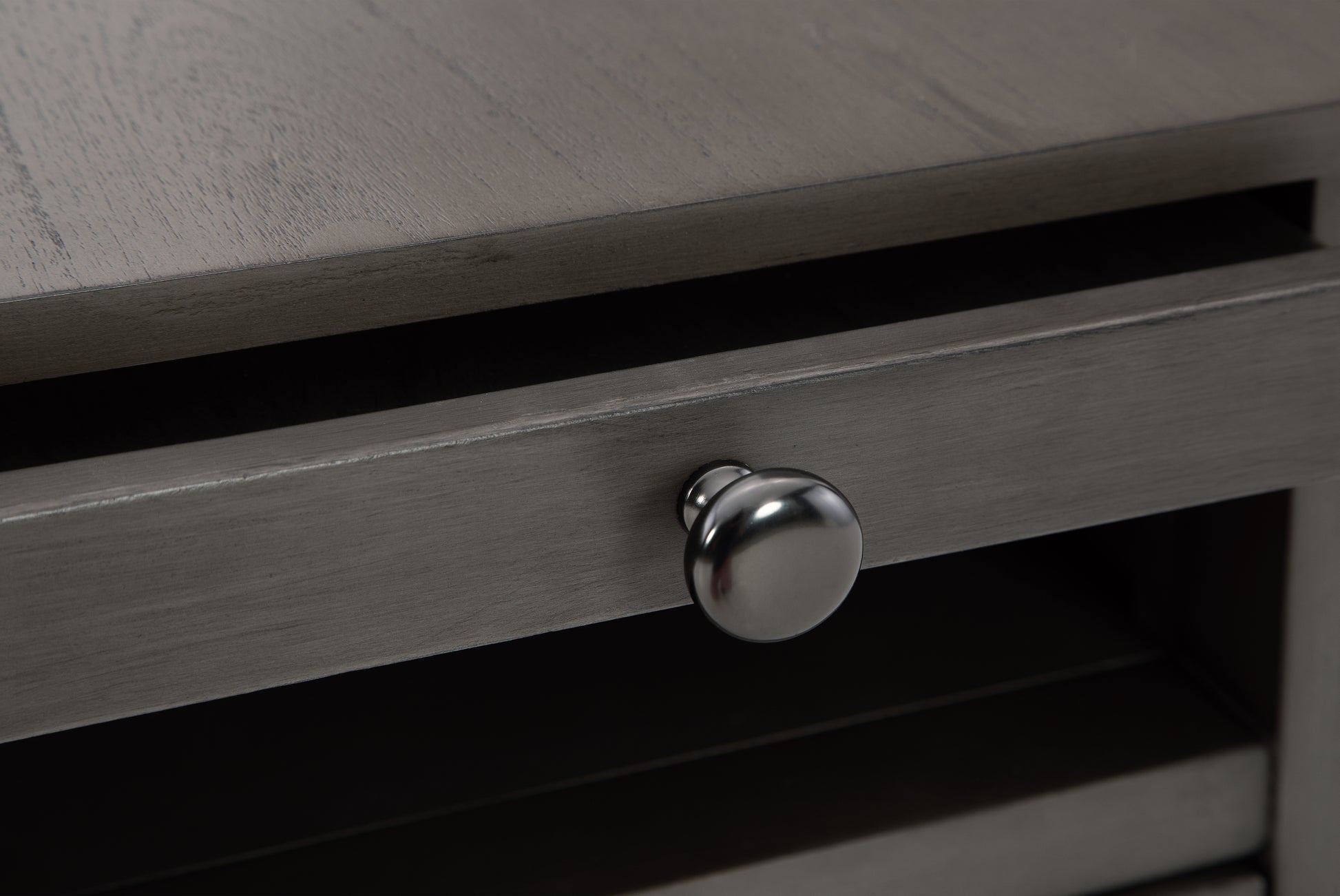 Add big character to a small space with this chairside end table. With its compact size and strong silhouette, it can go anywhere and blend easily into the decor. Less is so much more with the Shaker-inspired design and black wood tone finish. Loaded with form and function, this end table displays accent pieces and stores essentials securely while keeping devices powered up.