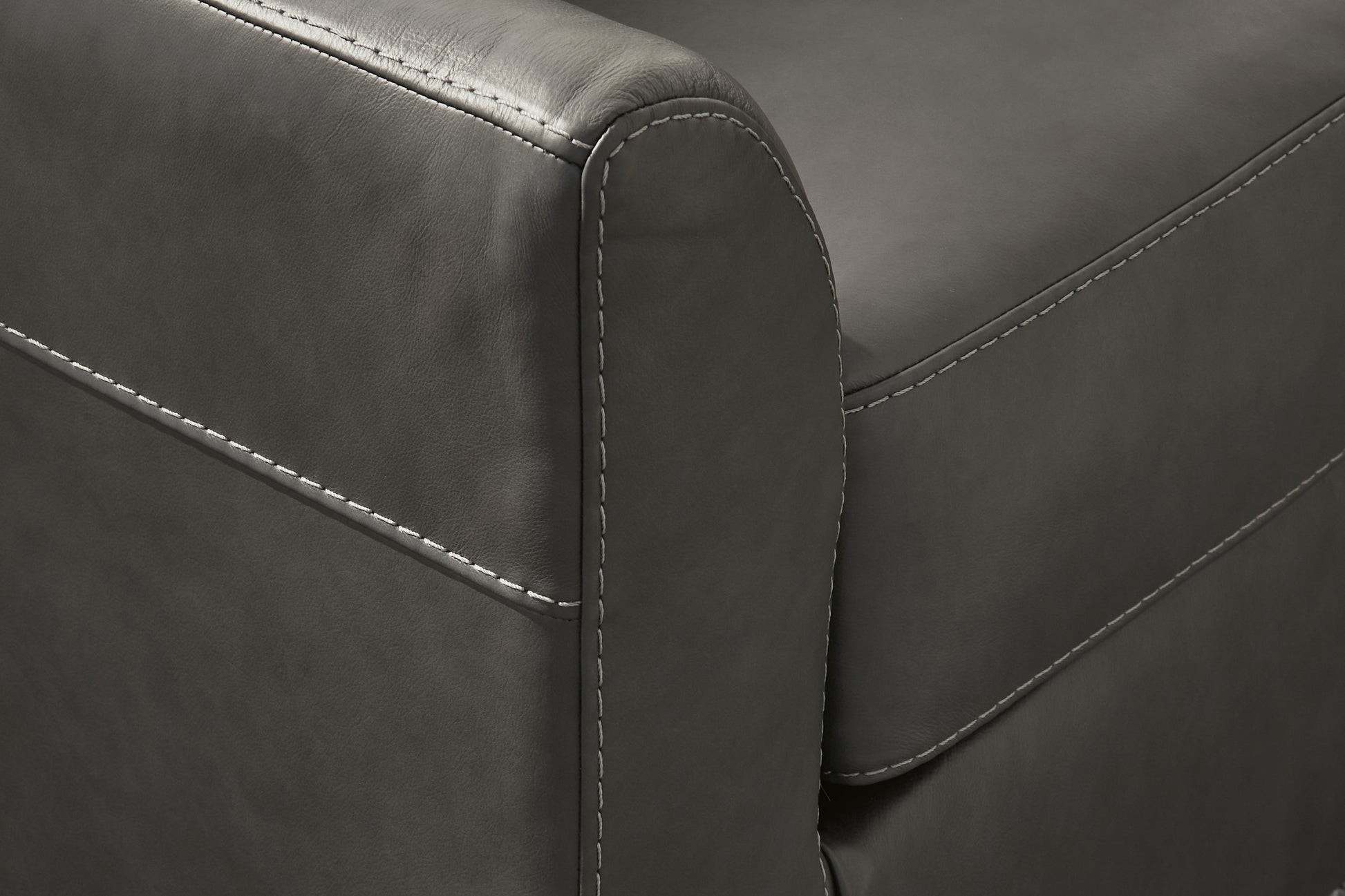 Luxurious lounging, everyday affordability. This sectional prioritizes comfort that suits your modern lifestyle. Its combination of leather and faux leather upholstery indulges you in soft seating, with subtle dimension added by natural pebble detailing. Ending in tapered accent legs, this sectional is a chic way to complete your home’s central, contemporary hub for entertainment.