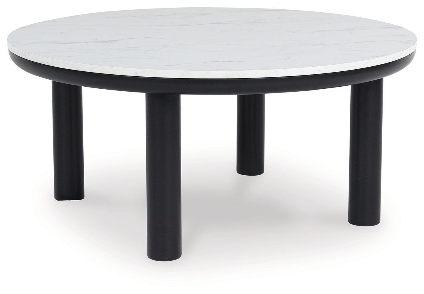 Clean lines meet cool curves with this accent table set. Simple dowel legs and a black finish lend a modern vibe, while replicated white marble tops complete the casual lifestyle design. With their varying heights, these versatile tables can be used together or individually for functionality and style.